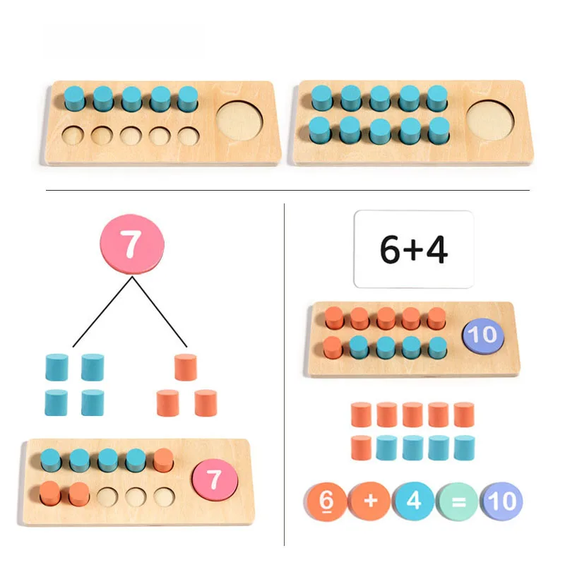 Træ Regnespil Sæt – Montessori Tælle- og Regnekort til Børn