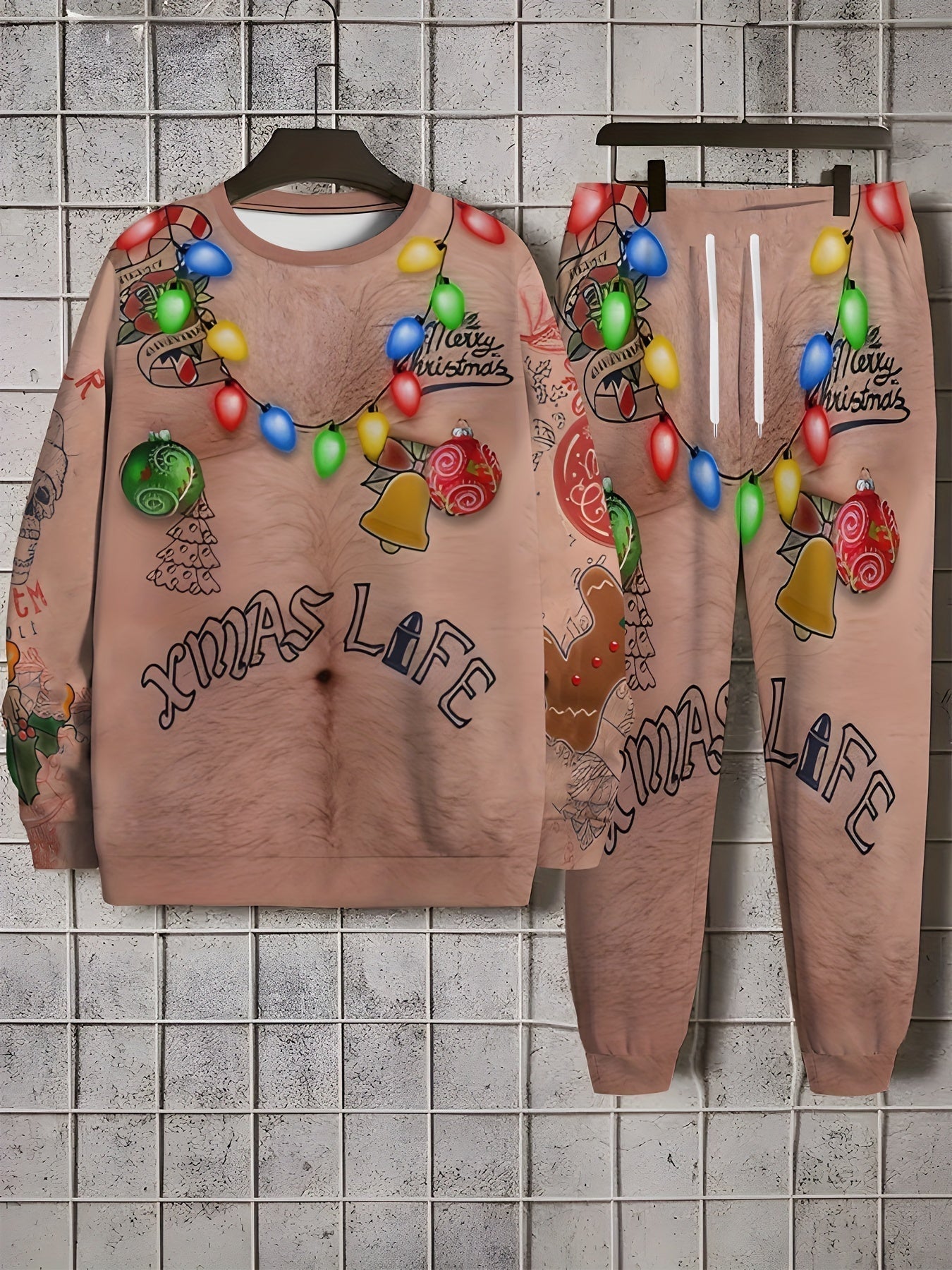 Denne joggingdragt er ideel til julemorgen, familiefotos eller hyggelige aftener foran pejsen. Kombinér nemt med sneakers eller hjemmesko for et komplet vinterlook.