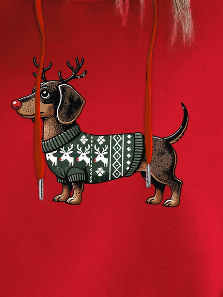 Dame Jule Hoodie med Gravhund Print –...