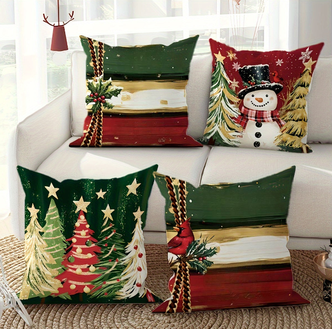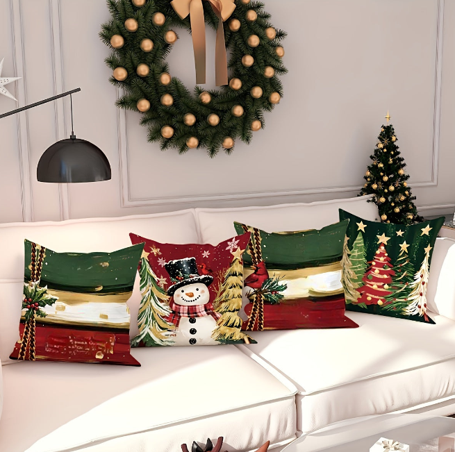 Giv din stue et festligt løft med disse dekorative jule pudebetræk. De smukke designs med juletræer, snemænd og vintermotiver skaber straks en varm og indbydende julestemning.