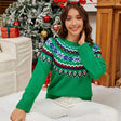 Women's Christmas Sweater – Green Winter Sweater with Colorful Nordic Pattern
