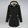 Stay warm and elegant this winter with this beautiful women's parka. The jacket features a soft fleece lining and a protective hood, so you are optimally shielded from cold and wind. The adjustable drawstring waist provides a flattering fit, while the fine wooden details add a classic touch.