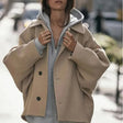 Dame Capejakke – Elegant Oversized Jakke med Klassiske Knapper - Khaki / Ekstra lille er restordre og vil blive sendt, så snart den er på lager igen.