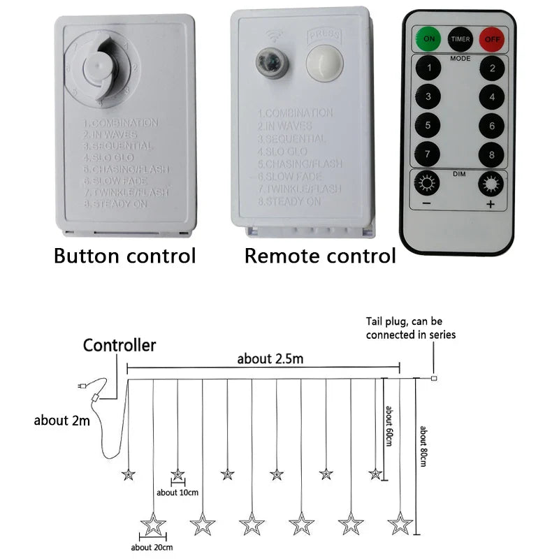 Jule Stjerne Gardinbelysning – LED Vinduesbelysning med Stjerner - Varm/hvid / Knapbetjening er restordre og vil blive sendt, så snart den er på lager igen.